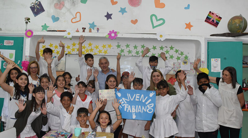 El intendente de Berisso Fabián Cagliardi visitó, junto a la presidenta del Consejo Escolar Inés García, la Escuela de Educación Primaria N° 3 Hipólito Irigoyen (16 y 165) con el fin de conocer el proyecto que presentaron los alumnos de 5To B Turno Tarde el cual establece renombrar algunas de las calles que atraviesan la Av. Montevideo.