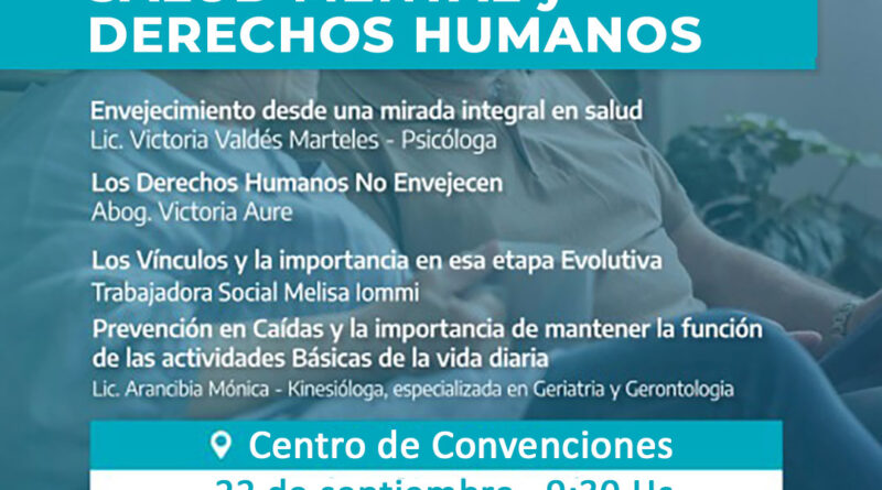 La Secretaría de Tercera Edad junto a la de Salud informan que el próximo jueves 22 de septiembre tendrá lugar la charla taller denominada “Salud Mental y Derechos Humanos” abierta a la comunidad. Se llevará a cabo la actividad en el Centro de Convenciones a las 9.30 horas.