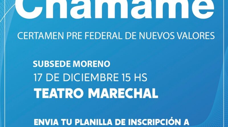 Se encuentran disponibles las inscripciones para participar del “49° Festival Nacional del Chamamé: Certamen Pre-Federal de Nuevos Valores”, que se realizará el día 17 de diciembre, desde las 15 horas, en el teatro municipal “Leopoldo Marechal”, ubicado en Asconapé 85.