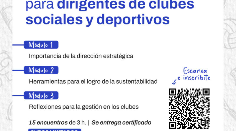 La formación para dirigentes de clubes barriales se ofrecerá de forma gratuita y con cupos limitados; los interesados pueden inscribirse a través del formulario web PROGRAMA DE FORMACIÓN PARA DIRIGENTES DE CLUBES SOCIALES Y DEPORTIVOS y cada institución podrá inscribir hasta dos representantes.