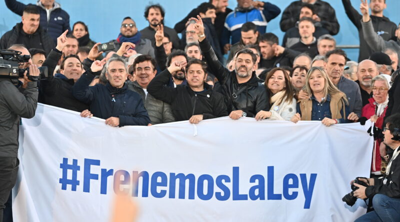 “En el Congreso de la Nación está en trámite la denominada Ley Bases, que ataca a los jubilados y a los trabajadores, y pretende otorgarle súper poderes a la intolerancia del Presidente”, remarcó Kicillof e indicó: “En esta jornada se ha dispuesto a marchar cuando se trate en el Senado y oponernos hasta derrumbar una ley que no tiene ni un solo artículo que beneficie a nuestro pueblo”.