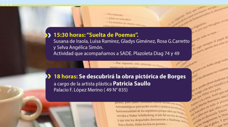 Como puntapié de la jornada, desde las 15:30 en la plazoleta de diagonal 74 y 49, se llevará a cabo la clásica “Suelta de Poemas” de la Sociedad Argentina de Escritores (SADE) y la Fundación El Libro, una propuesta en la que cada filial de SADE está representada por cinco socios.