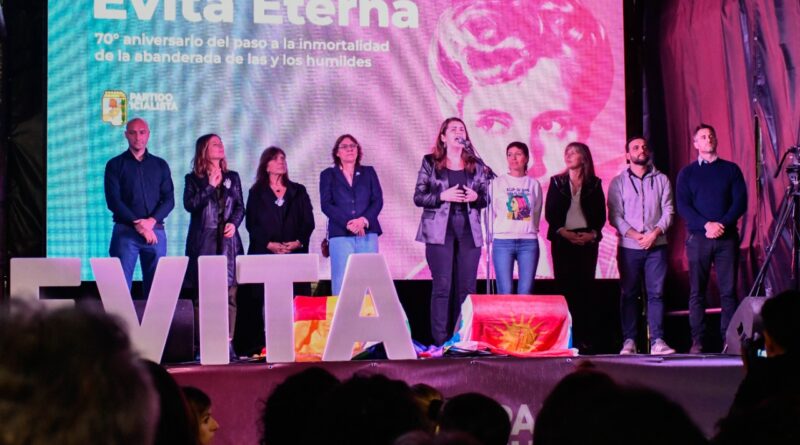 “Hoy en este día, en ejemplo de unidad, agradezco este escenario de unidad, agradezco a cada uno y cada una que hoy está bajo la lluvia. Agradezco a las Evitas que homenajean a nuestra santa Evita, a la abanderada de los humildes. No renunciemos a la unidad, hay 2023 porque estamos obligados por la dignidad de nuestro pueblo, por la santa Evita, por la memoria del General Perón a llevar dignidad para siempre al pueblo argentino” concluyó Mariel Fernández.