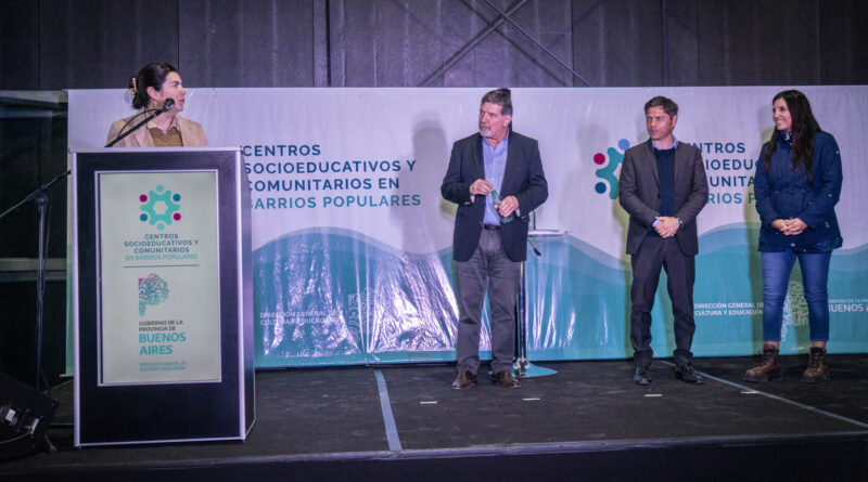 La intendenta de Moreno, Mariel Fernández, junto al gobernador de la Provincia de Buenos Aires, Axel Kicillof, y el director general de Cultura y Educación, Alberto Sileoni, entregaron entregaron kits escolares y deportivos a los 12 Centros Socioeducativos y Comunitarios (CSC) de Moreno.