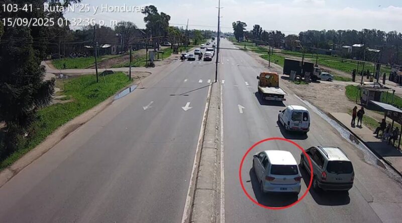 El Centro de Monitoreo Municipal detectó el rodado y dio aviso inmediato a las fuerzas de seguridad. En un operativo coordinado, el vehículo fue localizado sobre Ruta 25 y Pericles. Ante la voz de alto, los sospechosos iniciaron la fuga, que finalizó en la intersección con calle Storni al impactar contra otro vehículo, en el que circulaban un vecino de 36 años y su hija de 15, quien sufrió lesiones leves y fue trasladada al hospital local para su atención.