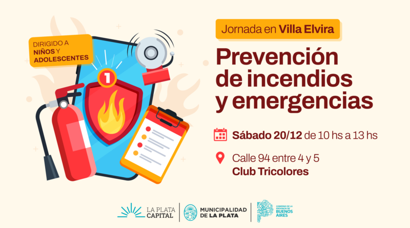La Municipalidad de La Plata junto al Gobierno provincial llevará adelante este sábado 20 de diciembre de 10:00 a 13:00 una jornada de prevención de incendios y emergencias en el Club Tricolores de calle 94 entre 4 y 5 con el fin de brindar información clave para el cuidado de la comunidad ante situaciones de riesgo.
