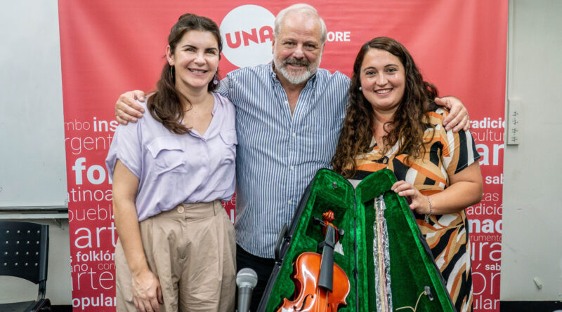 En el marco de este acuerdo, el Departamento de Folklore de la UNA entregó cinco violines al Municipio, herramientas fundamentales para la enseñanza musical de los estudiantes.