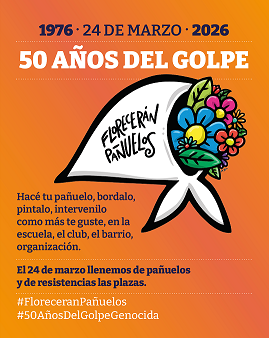 En el mes de la Memoria, y en vísperas del 50 aniversario del golpe genocida, los organismos de Derechos Humanos convocamos a la sociedad, instituciones, sindicatos, comunidad educativa y organizaciones de la sociedad civil a sumarse a la campaña “Florecerán pañuelos”.